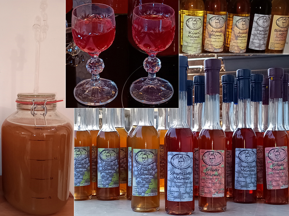Honigwein (Met) aus bestem steirischen Honig gebraut. Für die Geschmacksvielfalt auch mit eigenem Fruchtpulver aromatisiert (Melomel)